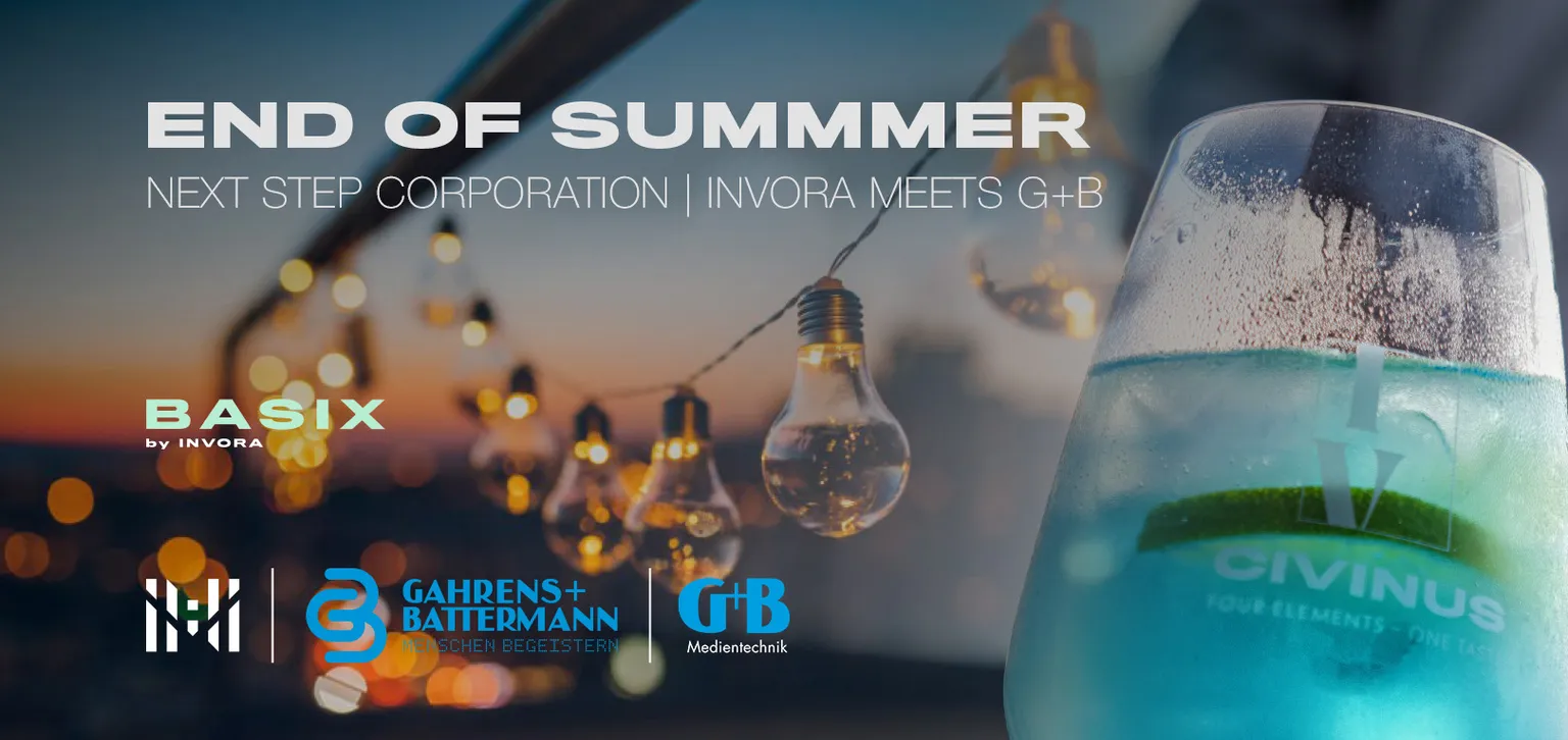 Am 11. September 2025 um 17:30 Uhr lädt euch das G+B Team Köln gemeinsam mit INVORA zu einem entspannten Sommerabend in unserer Partner-Location BASIX by INVORA ein.
